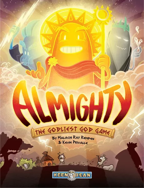 Almighty: The Godliest God Game: A 1-4 player game with a $5 PNP level, in which you are a moody ancient god - of the Sun, the Dead, Love, or Storms - competing for belief and glory by performing various acts upon the inhabitants of the mortal plane. Link.