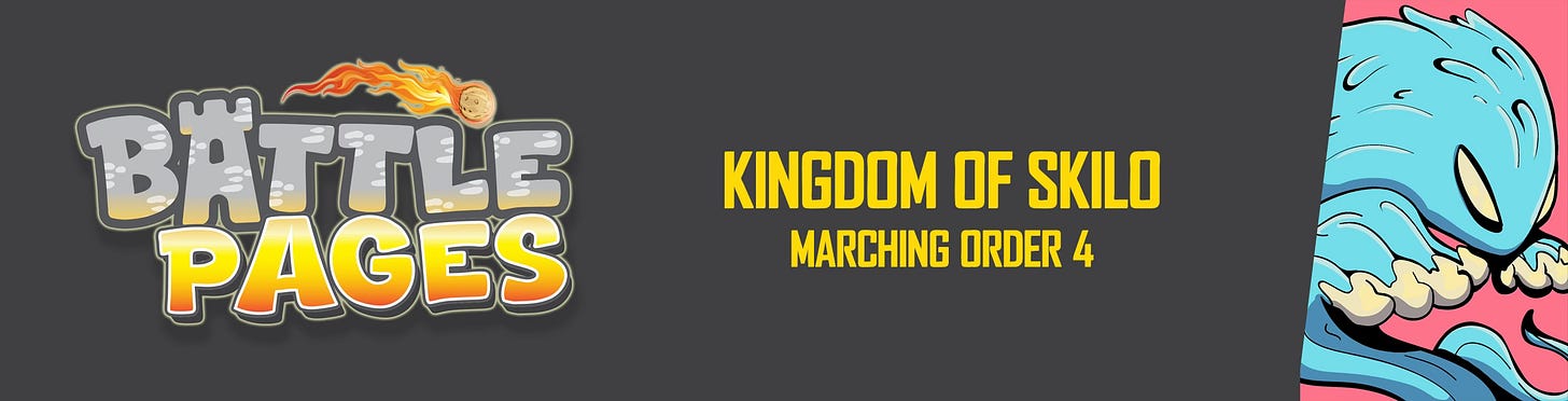 Battle Pages - Kingdom of Skilo Marching Order 4: The final sheet for Skill has been added to the year-long set for Battle Pages. Each month introduces a new sheet, but each week changes up the enemy’s marching order to push you to try out new strategies. Link.