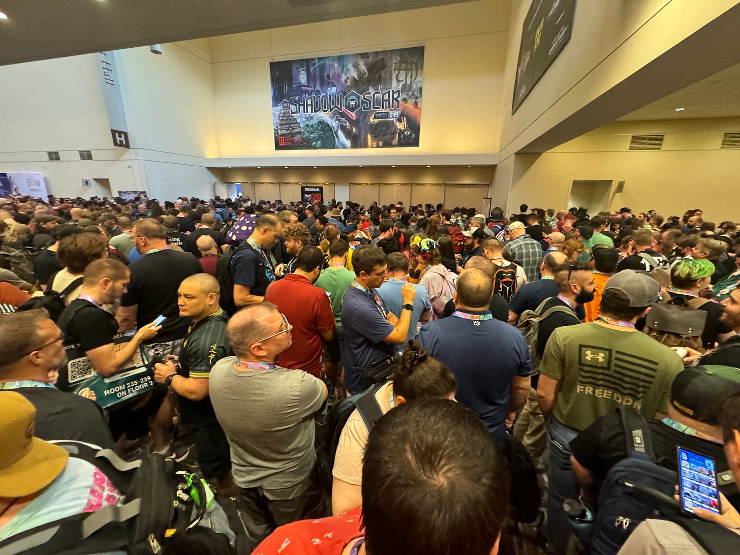 We thought about a QR code as a rules solution, but that complicates the initial plays that might happen naturally at the convention. Phone service is notoriously bad at conventions. So, you’d have a game that is complicated, but technically playable. That’s not the best way to go into something like this.